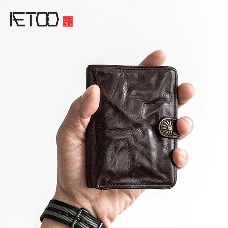 Clearance AETOO Head cowhide Men's short wallet retro leather ticket clip put driver's license ID